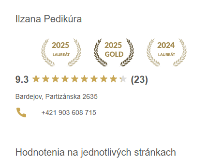 Vďaka Vašim hodnoteniam sme získali aj v tomto roku ocenenie ORLY kozmetiky 2025 a zaradili sa tak medzi najlepšie hodnotené firmy. Veľmi pekne ďakujeme za Vaše referencie. Naše recenzie nájdete na našom firemnom profile na googli a tiež v rezervačnom systéme. Ak ste navštívili náš salón a ešte ste nám nezanechali Vašu skúsenosť, môžete tak urobiť kliknutím na tlačidlo nižšie. Ďakujeme.